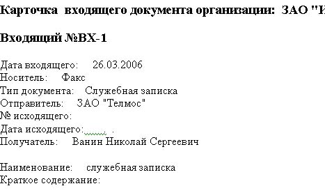 | 7. Печать карточки - позволяет распечатать карточку данного входящего документа. Если нажать на кнопку Печать карточки , то откроется "Карточка входящего документа организации " и "Print Preview" (рис. 1.2.8). |