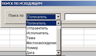 Поиск ведётся только по "Отправителю" , "Получателю", "Теме", "Местонахождению", "Номеру","Дате", "Исполнителю". Вы выбираете нужную вам характеристику и соответствующим образом заполняете правое белое поле. Затем нажимаете кнопку . (рис. 1.3.9) |