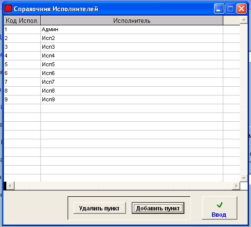 | 7. Исполнитель2: при двойном нажатии на салатовое поле откроется окно "Справочник Исполнителей" (рис. 2.2.12). |