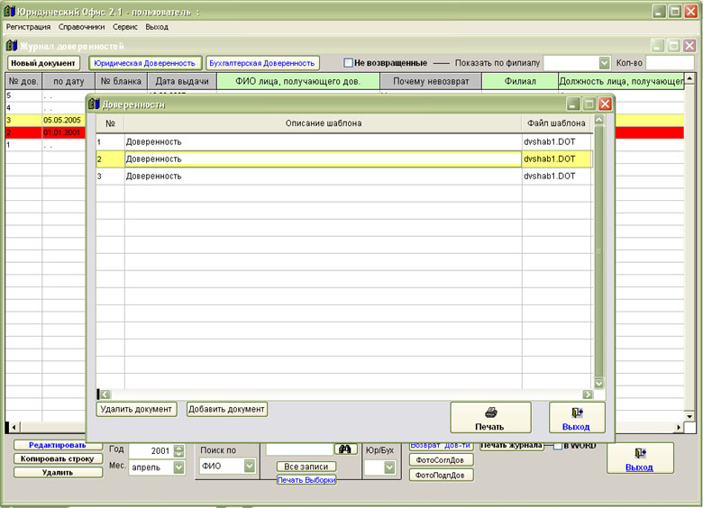 "Доверенность в MS Word", то юридическая доверенность формируется на