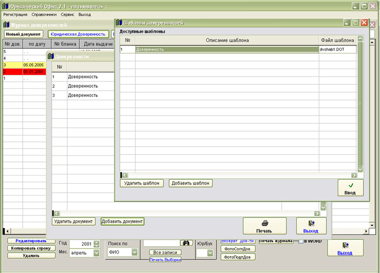 Шаблон доверенности*.DOT: в меню Сервис-Настройки программы при
