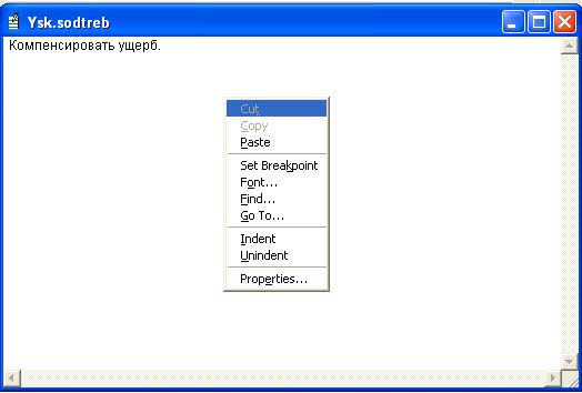 - Содержание требований: при двойном нажатии на белое "Memo-поле" поле откроется окно, где находится шаблон содержания требований (рис. 4.2.14). Шаблон можно сформировать из любого поля через буфер Windows. Из любой программы (блокнот, word и т.д.) копируется текст документа. Нажав на правую кнопку мыши в окне шаблона, выбираете пункт меню Paste. Далее шаблон надо подредактировать. Пробелами выставить отступы ( Tab не использовать), где перевод строки - добавить Enter. Если поле заполнено , то "Memo" с большой буквы "M". Если поле пустое, то "memo" с маленькой "m". Следует знать , что каждому исковому заявлению соответствует своё "Memo-поле".