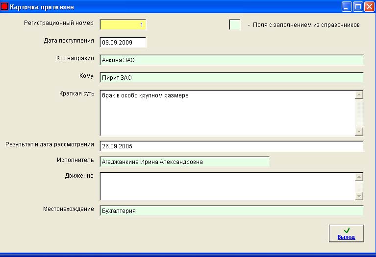 | Рассмотрим нижнюю часть окна "Журнал претензий" ( рис. 6.1.4). |