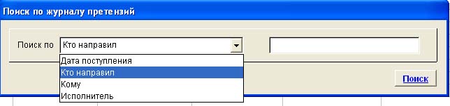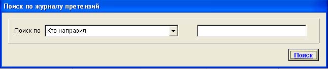- Поиск по журналу претензий: если нажать на кнопку Поиск, то откроется окно "Поиск по журналу претензий" ( рис. 6.1.9).