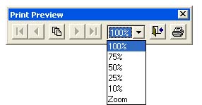 В окошке "Print Preview" можно изменить масштаб отчёта. Нажмите на значок и выберете масштаб (рис. 6.1.7). |