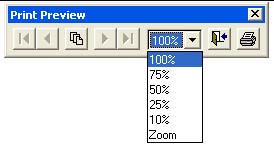 В окошке "Print Preview" можно изменить масштаб отчёта. Нажмите на значок и выберете масштаб (рис. 7.1.11). |