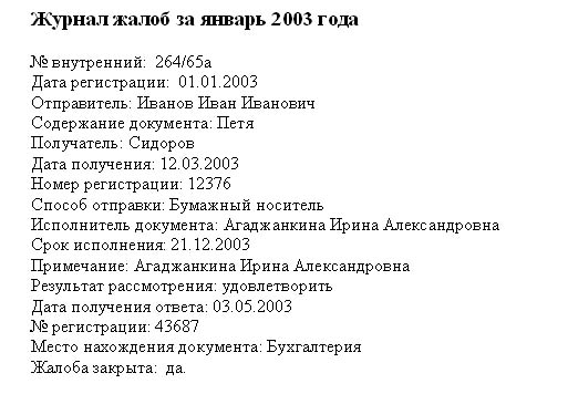 - Все записи - при нажатии на кнопку Все записи отображаются все жалобы.