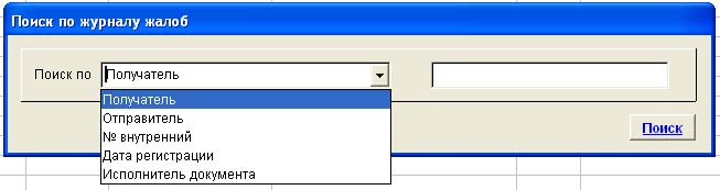 - Поиск по журналу жалоб: если нажать на кнопку Поиск, то откроется окно "Поиск по журналу жалоб " ( рис. 7.1.15).