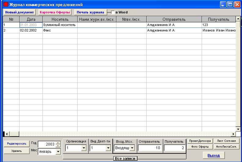 | При выборе пункта меню "Регистрация" - "Коммерческие предложения " загрузится окно "Журнал коммерческих предложений" (рис. 8.2.1). |