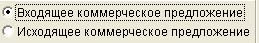 Далее вы выбираете, является коммерческое предложение входящим или исходящим. Для этого вы нажимаете на белый круг . Внутри него появляется точка . Например, на рисунке 8.2.3 выбрано "Входящее коммерческое предложение". |