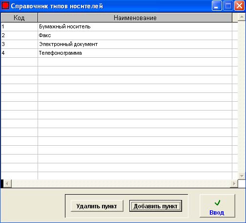 | 3. Тип носителя: при нажатии на салатовое поле открывается окно "Справочник типов носителей" (рис. 8.2.5). |