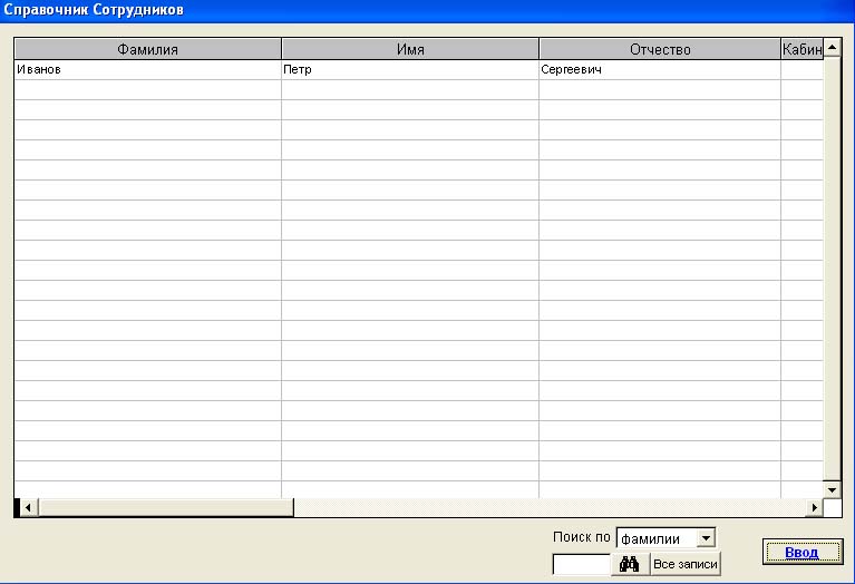 | Подводите курсор мыши к нужному вам варианту и нажимаете на него. Затем нажимаете на кнопку Ввод (рис. 8.2.17). В этом окне также есть произвести поиск по ФИО, а также просмотреть Все записи. |