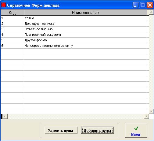 | Подводите курсор мыши к нужному вам варианту и нажимаете на него. Затем нажимаете на кнопку Ввод (рис. 8.2.22). В этом окне также есть возможность добавить новый пункт и удалить старый. |