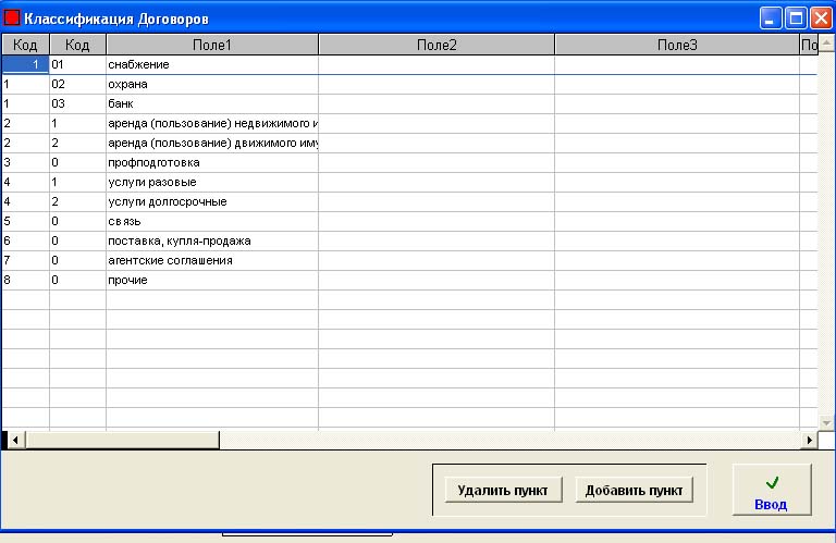 | 16. Классификация оферты: при нажатии на салатовое поле открывается окно "Классификация договоров " (рис. 8.2.26). |