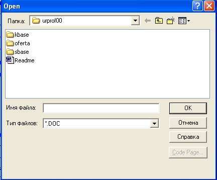 | По умолчанию стоит тип файлов DOC, можно выбрать All Files и вставить файл любого формата -выбрать через обзор нужный файл и нажмите кнопку ОК. |