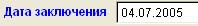 | 2. Дата заключения: cтавите курсор в крайне левое положение белого поля "дата заключения", и начинаете вводить дату, не обращая внимание на точки. После заполнения этого поля, курсор автоматически переходит на следующее поле. В том случае, если вы ввели неправильно дату (13-й месяц, 32-й день и т.д.), то в правом верхнем углу экрана появится сообщение Invalid Date . В итоге получается так, как показано на рис. 9.2.3. |