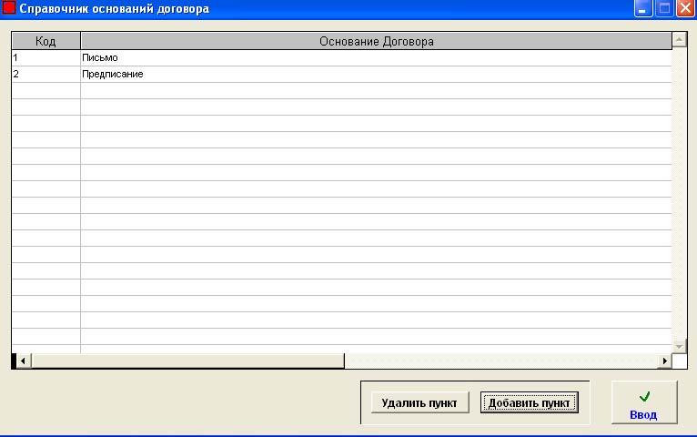 | 14. Основание (инициатор): при нажатии на салатовое поле открывается окно "Справочник оснований договора" (рис. 9.2.15). |