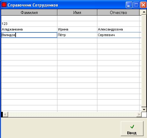 | Двойной щелчок по записи филиала позволяет ввести филиал. |