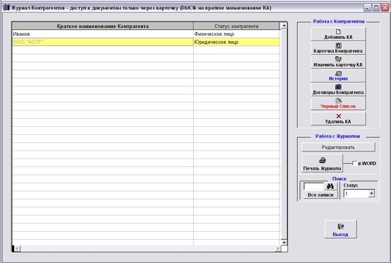 Верхняя последовательность слов - название столбцов. Нижняя последовательность символов и слов характеризует договор. Нажатие на заголовок таблицы (например, на "Дата закл.") упорядочивает записи по соответствующему полю (соответственно по дате заключения).