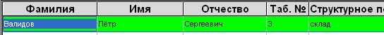 | Разлинованная белая область - это таблица окна "Журнал сотрудников". В таблице сотрудник представлен в виде полосы (рис. 2.1.2). |