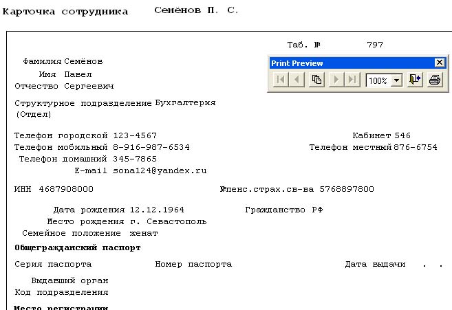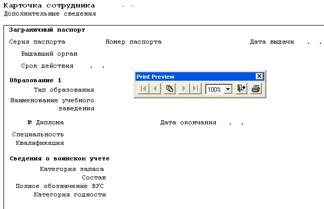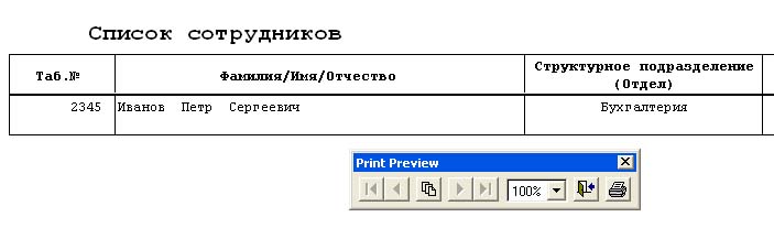- позволяет распечатать журнал сотрудников. Если нажать на кнопку , то откроется "Список Сотрудников " и "Print Preview" (рис. 2.1.12).