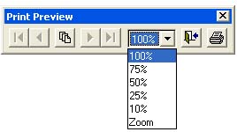 В окошке "Print Preview" можно изменить масштаб отчёта. Нажмите на значок и выберете масштаб (рис. 2.1.13). |