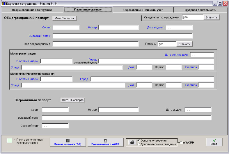 "ТекстовоеПоле6" - ФИО работника+паспортные данные