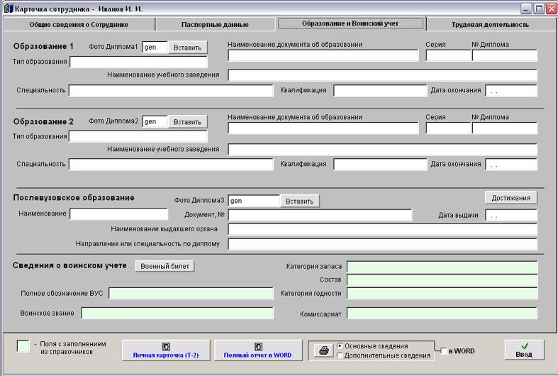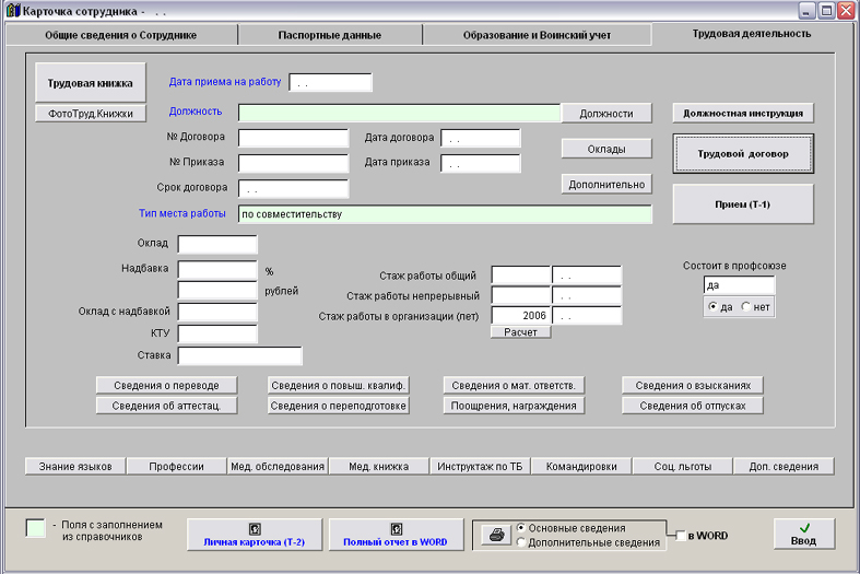"ТекстовоеПоле13" - Тип (вид) места работы основной/по совместительству