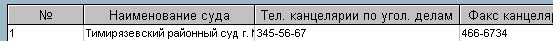 | Разлинованная белая область - это таблица окна "Справочник судов". В таблице суд представлен в виде полосы (рис. 3.1.2). |