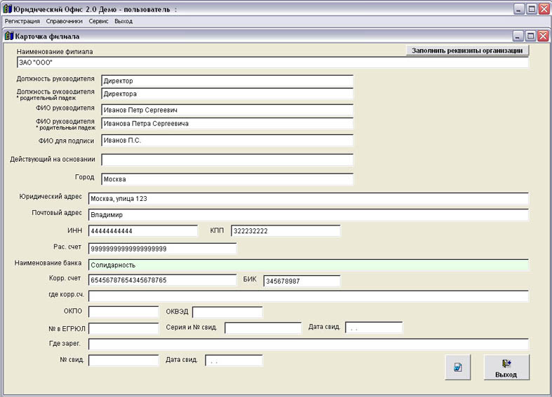 | При выборе пункта меню "Справочники" - "Филиалы" загрузится окно "Справочник