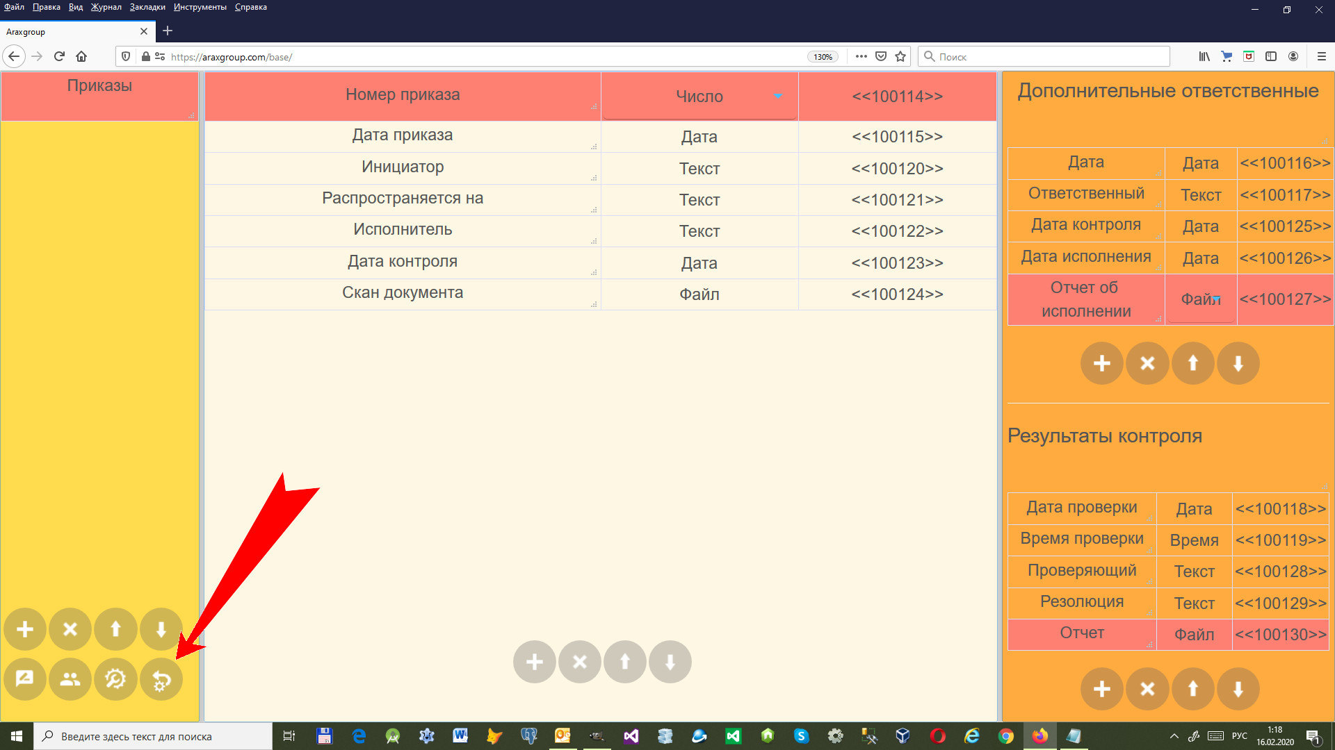 Для просмотра созданной базы данных нажмите кнопку с шестеренкой и обратной стрелкой в нижней части левой панели сервиса.