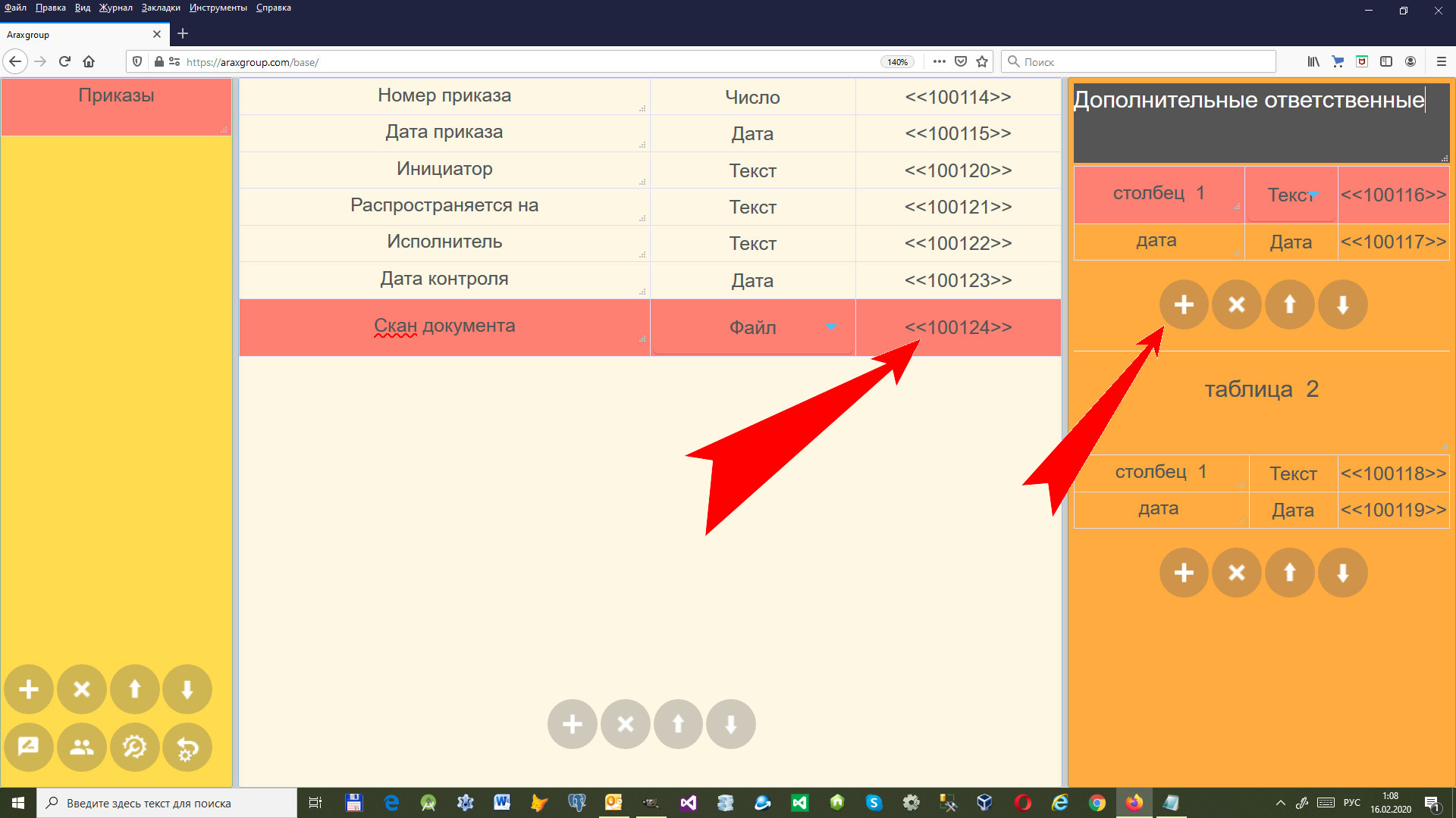 И под соответствующей таблицей нажмите на кнопку с изображением "+".