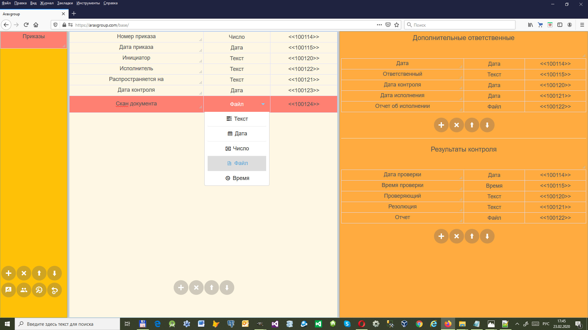 Для добавления файла в приложение в одну из таблиц нужно добавить столбец типа "Файл".