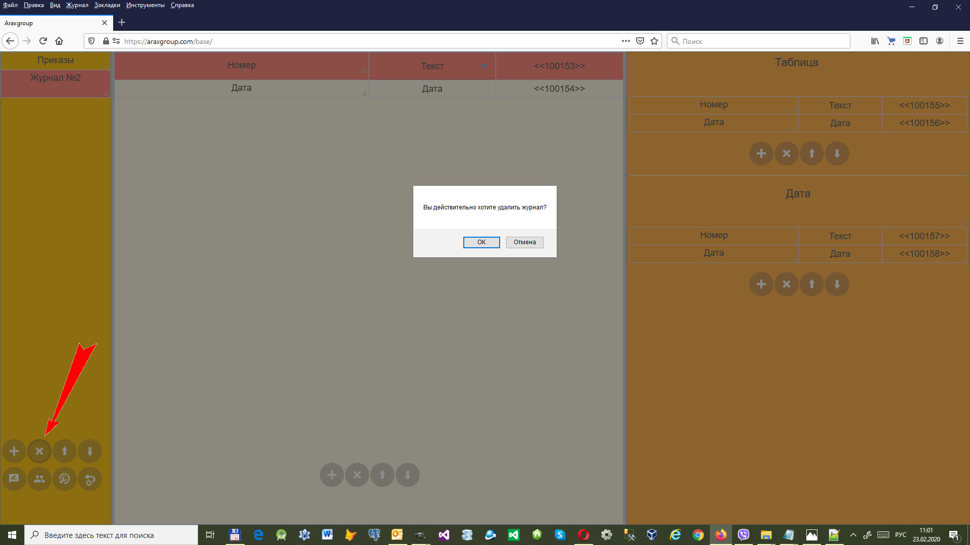 Для удаления журнала перейдите в режим администрирования (шестеренка в левом нижнем углу после загрузки сервиса в режиме Администратора)