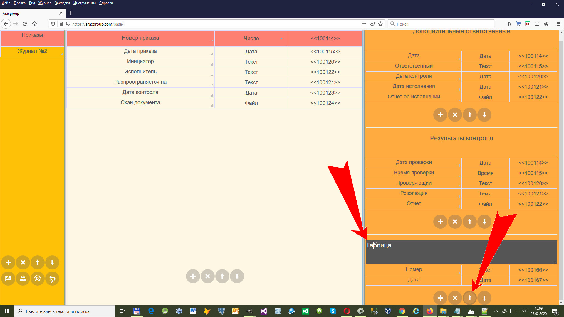 Нажмите на кнопку со стрелкой вверх или вниз (в зависимости от того, куда надо переместить), таблица будет перемещена вверх или вниз.