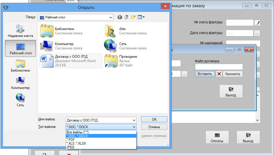 Выбранный файл будет добавлен в программу (его в дальнейшем можно отправить клиенту на e-mail вместе со счетом, установив соответствующую галочку в сообщении).
