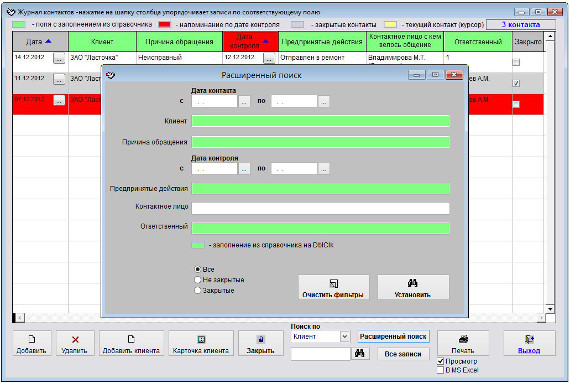 В журнале клиентов отобразятся контакты, которые соответсвуют введенным в форму поиска данным.