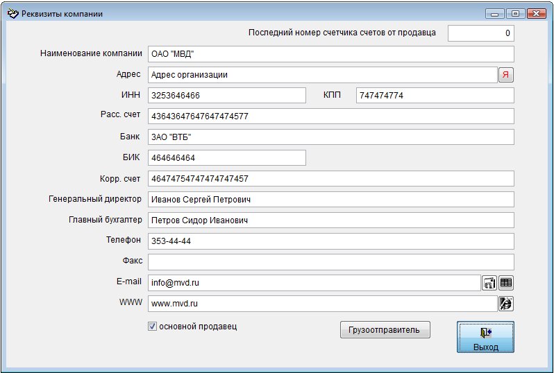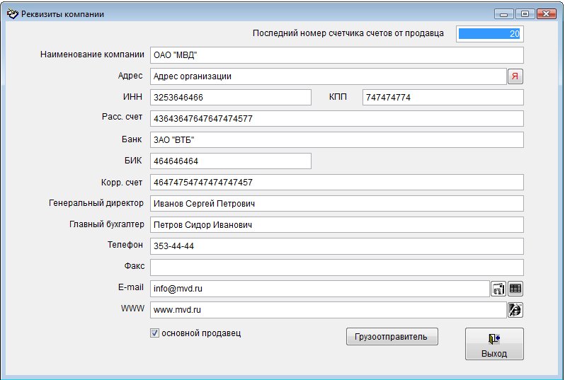 Для изменения реквизитов существующего продавца выберите нужного продавца в таблице и нажмите кнопку "Карточка".