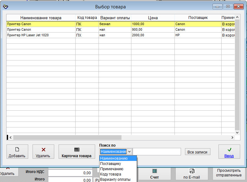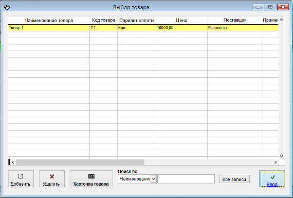 Откроется справочник товаров, выберите нужный товар их справочника.