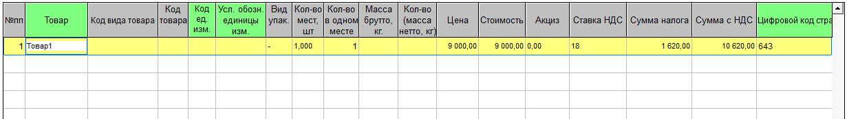 Товар будет добавлен, автоматически посчитаются налог и сумма с налогом.