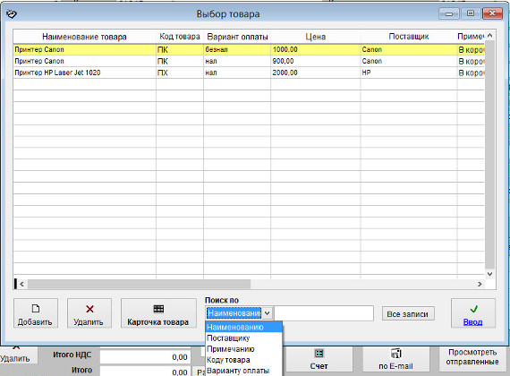 Дважды щелкните по наименованию товара в таблице товарных позиций, и выберите нужный товар их справочника.