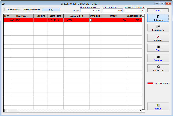 В данном разделе Вы можете вводить новые заказы либо копировать существующие, вводить оплаты, фильтровать оплаченные/не оплаченные заказы с расчетом итогов по заказам клиента.
