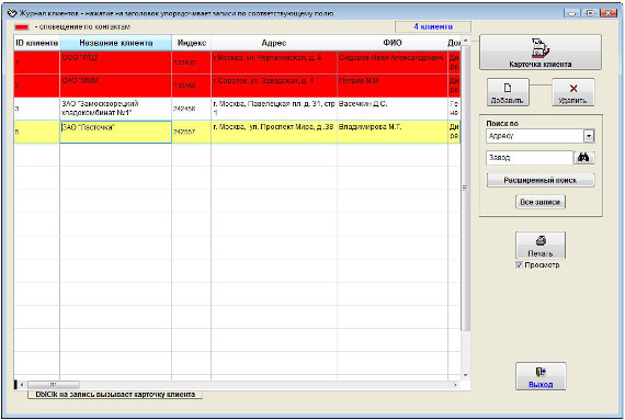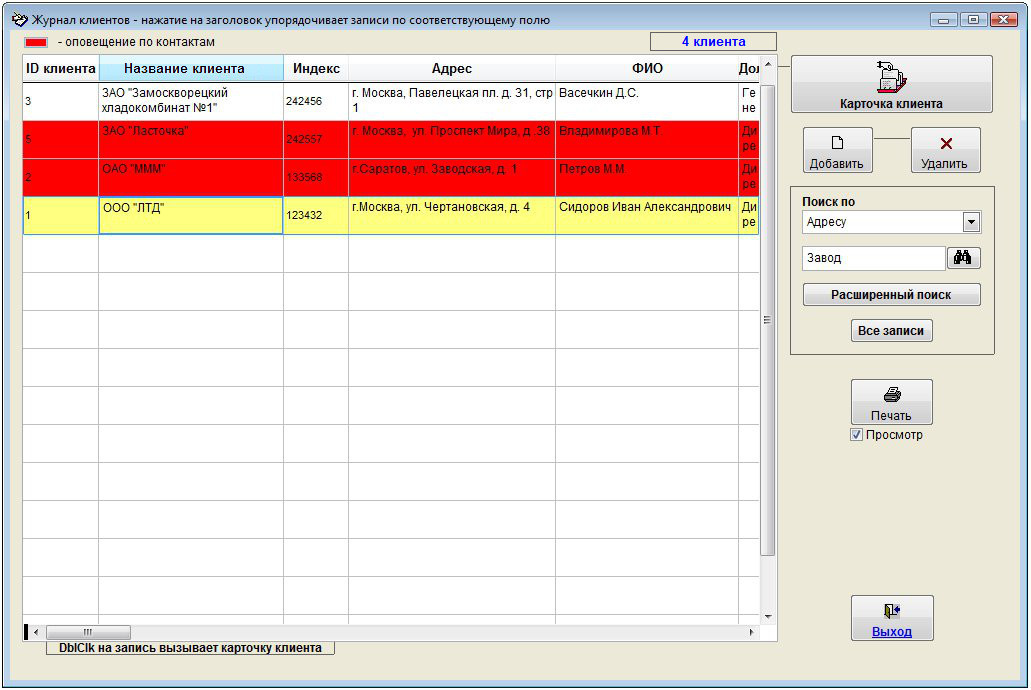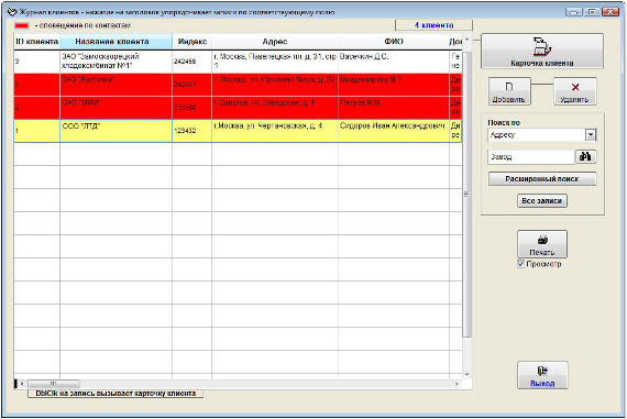 По умолчанию при загрузке программы записи в журнале клиентов упорядочиваются по ID, последние добавленные записи находятся внизу.