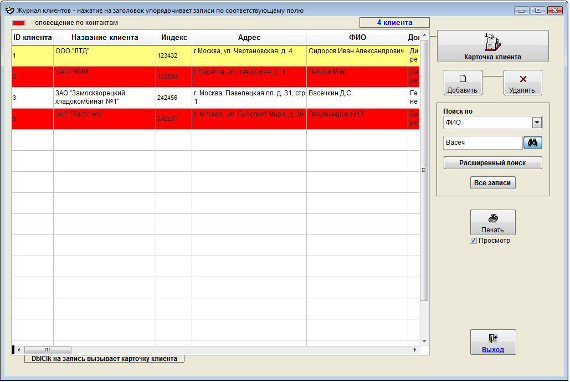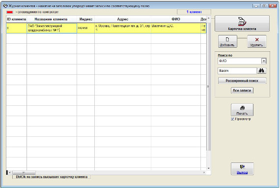 В журнале клиентов отобразятся только те записи, которые соответствуют критерию поиска.