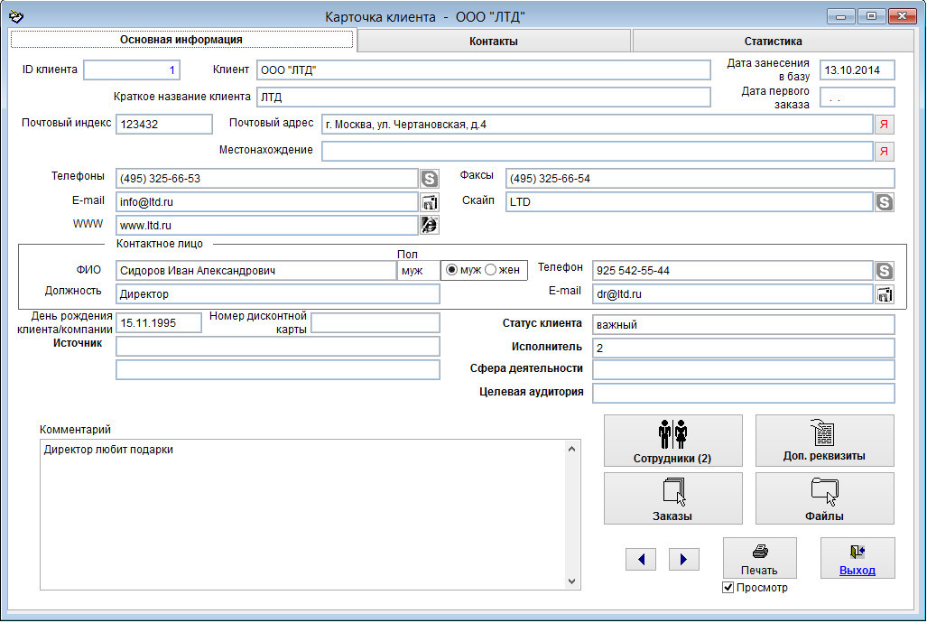 Для интерфейса Просмотр редактирование будет запрещено в карточке клиента, в также в дополнительных разделах - Заказы, Сотрудники, Контакты.