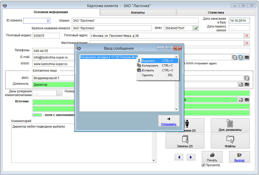 Будет совершен звонок пользователю скайпа, указанному в программе Клиенты в поле "Скайп", либо на номер телефона, указанный в поле Телефон.