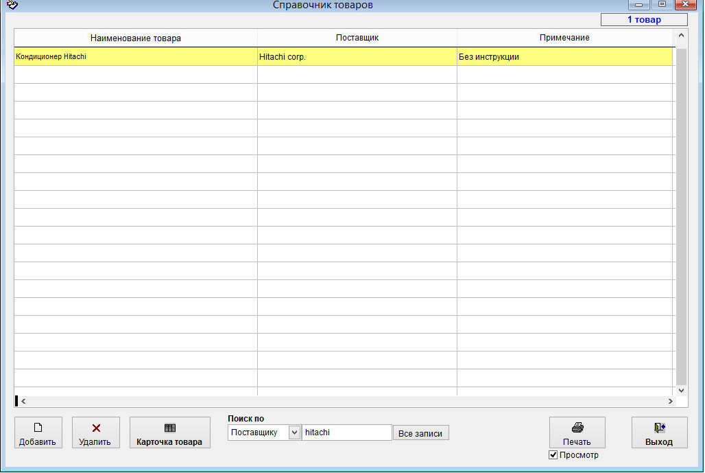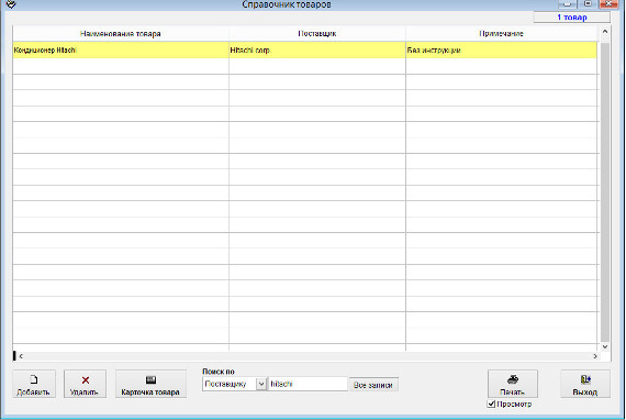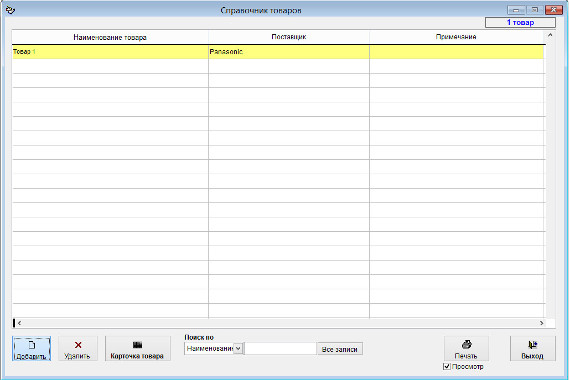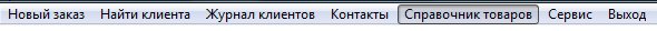 Для вызова справочника товаров выберите пункт меню "Справочник товаров"