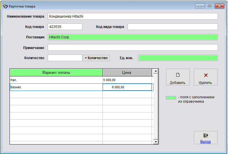 После заполнения карточки нажмите кнопку Выход.