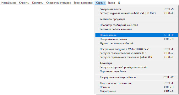 Для включения входа по паролю выберите пункт меню "Сервис-Пользователи".