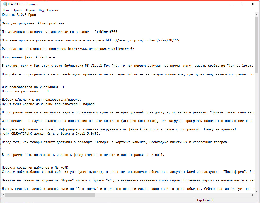 Для просмотра файла Readme.txt в папке с программой галочка должна быть установлена.